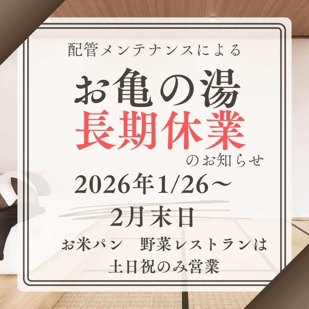 【重要なお知らせ】お亀の湯 長期休業について????♨️